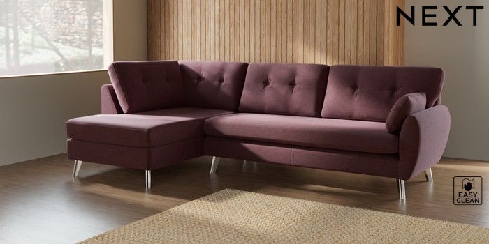 7.3.1 Buy Wilson Buttoned Back Large Corner Chaise - Left Hand Fine Chenille Easy Clean Mid Mulberry Purple Metal Tapered - Chrome from the Seasons online shop Click here to use our website with more accessibility support, for example screen readers