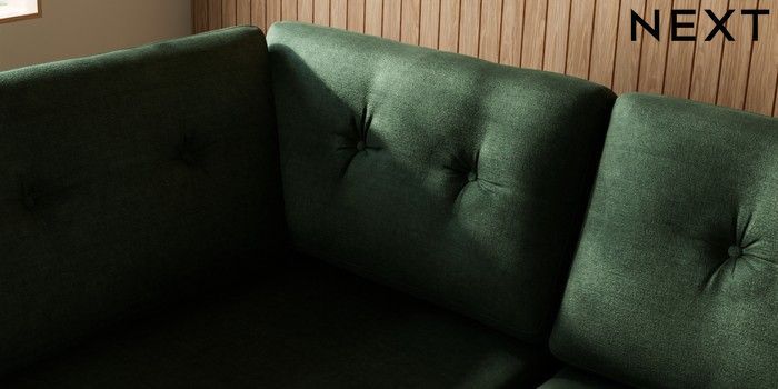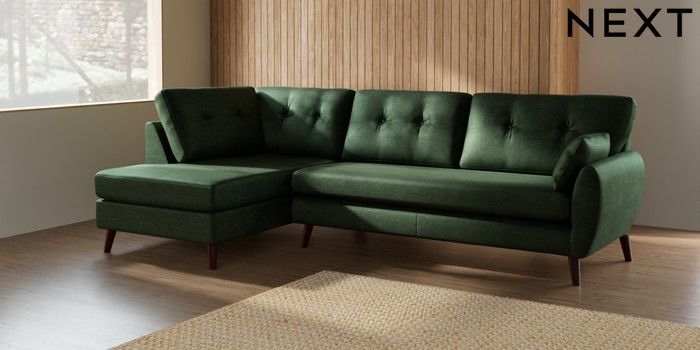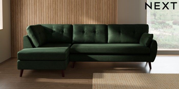 7.3.1 Buy Wilson Buttoned Back Large Corner Chaise - Left Hand Luxe Chenille Dark Green Retro Tapered - Dark Brown from the Seasons online shop Click here to use our website with more accessibility support, for example screen readers