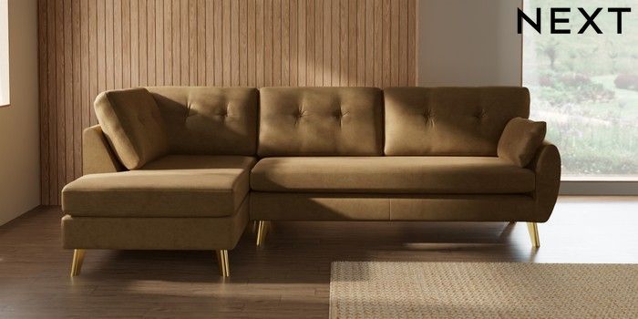 7.3.1 Buy Wilson Buttoned Back Large Corner Chaise - Left Hand Luxe Chenille Honey Yellow Metal Tapered - Gold from the Seasons online shop Click here to use our website with more accessibility support, for example screen readers