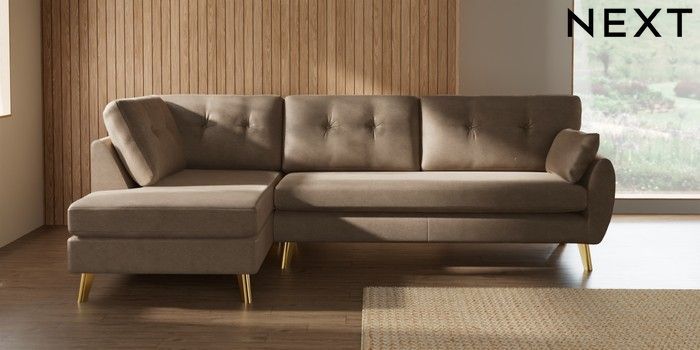 7.3.1 Buy Wilson Buttoned Back Large Corner Chaise - Left Hand Luxe Chenille Mid Camel Beige Metal Tapered - Gold from the Seasons online shop Click here to use our website with more accessibility support, for example screen readers