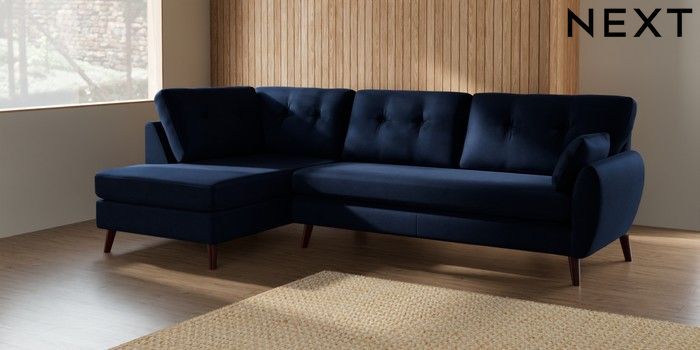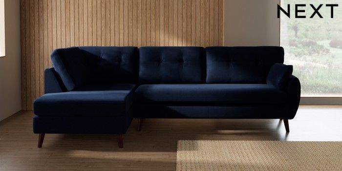 7.3.1 Buy Wilson Buttoned Back Large Corner Chaise - Left Hand Luxe Chenille Navy Blue Retro Tapered - Dark Brown from the Seasons online shop Click here to use our website with more accessibility support, for example screen readers