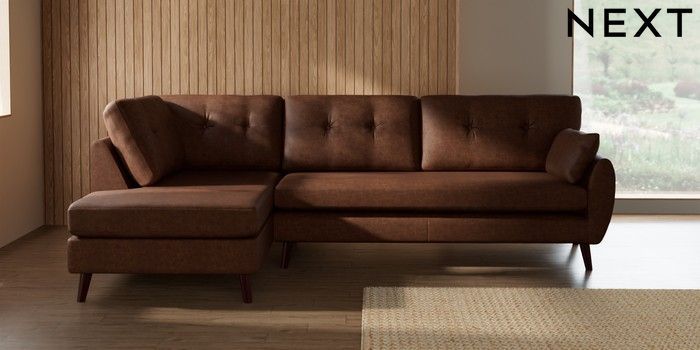 7.3.1 Buy Wilson Buttoned Back Large Corner Chaise - Left Hand Monza Faux Leather Easy Clean Chestnut Brown Retro Tapered - Dark Brown from the Seasons online shop