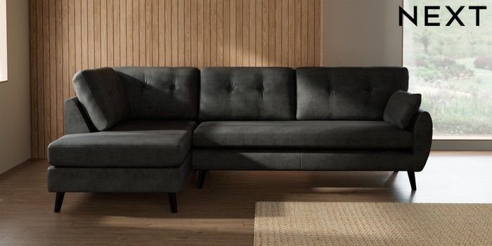 7.3.1 Buy Wilson Buttoned Back Large Corner Chaise - Left Hand Monza Faux Leather Easy Clean Dark Grey Retro Tapered - Dark from the Seasons online shop Click here to use our website with more accessibility support, for example screen readers