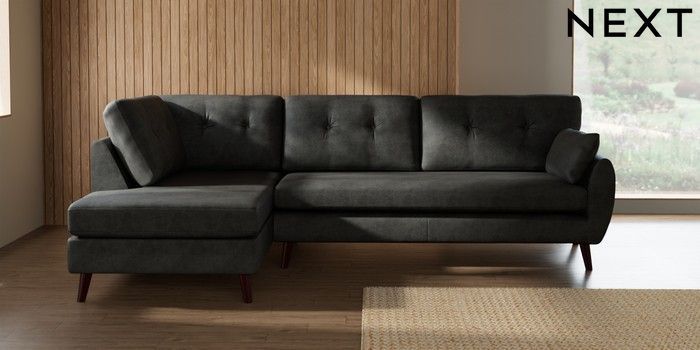 7.3.1 Buy Wilson Buttoned Back Large Corner Chaise - Left Hand Monza Faux Leather Easy Clean Dark Grey Retro Tapered - Dark Brown from the Seasons online shop Click here to use our website with more accessibility support, for example screen readers