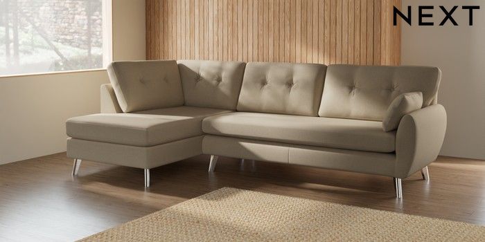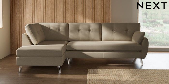 7.3.1 Buy Wilson Buttoned Back Large Corner Chaise - Left Hand Natural Mix Light Natural Metal Tapered - Chrome from the Seasons online shop Click here to use our website with more accessibility support, for example screen readers