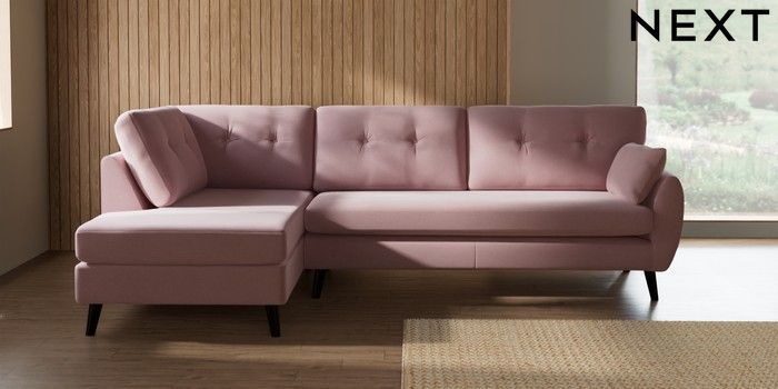 7.3.1 Buy Wilson Buttoned Back Large Corner Chaise - Left Hand Natural Mix Light Rose Pink Retro Tapered - Dark from the Seasons online shop Click here to use our website with more accessibility support, for example screen readers
