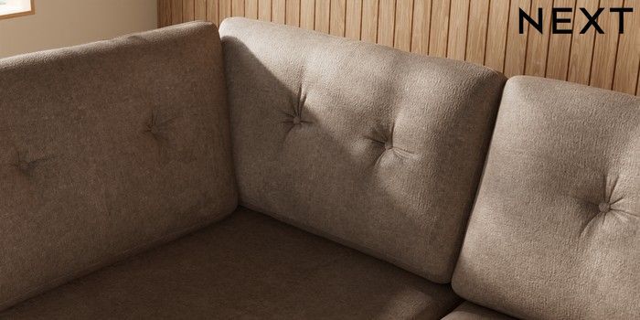 7.3.1 Buy Wilson Buttoned Back Large Corner Chaise - Left Hand Plush Chenille Mid Natural Metal Tapered - Gold from the Seasons online shop Click here to use our website with more accessibility support, for example screen readers