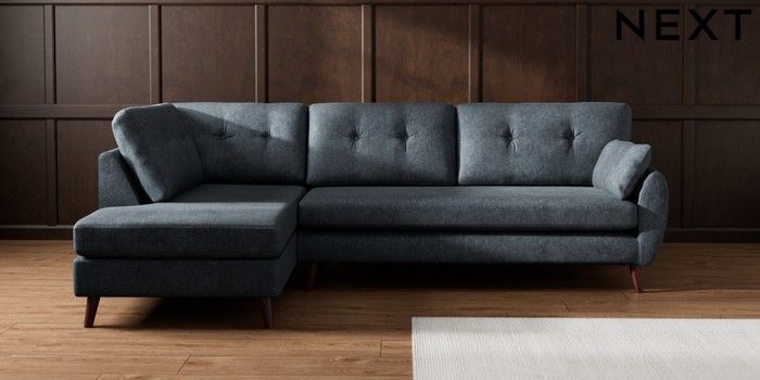 7.3.1 Buy Wilson Buttoned Back Large Corner Chaise - Left Hand Plush Chenille Slate Blue Retro Tapered - Dark Brown from the Seasons online shop Click here to use our website with more accessibility support, for example screen readers