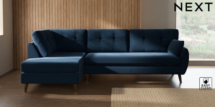 7.3.1 Buy Wilson Buttoned Back Large Corner Chaise - Left Hand Plush Velvet Easy Clean Airforce Blue Low Retro Tapered Metal Cap - Mid from the Seasons online shop Click here to use our website with more accessibility support, for example screen readers