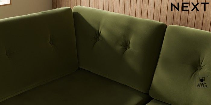 7.3.1 Buy Wilson Buttoned Back Large Corner Chaise - Left Hand Plush Velvet Easy Clean Mid Olive Green Retro Tapered - Dark from the Seasons online shop Click here to use our website with more accessibility support, for example screen readers