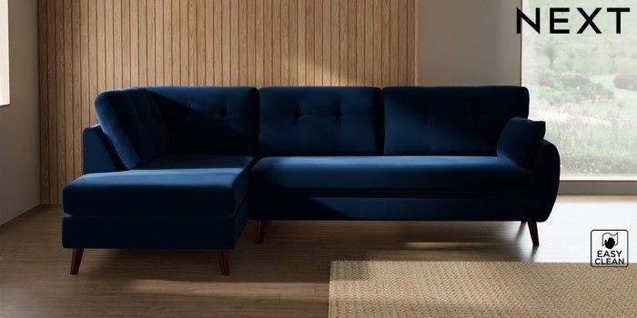 7.3.1 Buy Wilson Buttoned Back Large Corner Chaise - Left Hand Plush Velvet Easy Clean Navy Blue Retro Tapered - Dark Brown from the Seasons online shop Click here to use our website with more accessibility support, for example screen readers