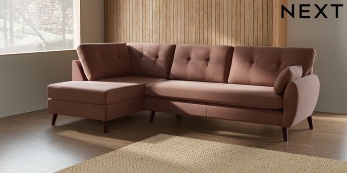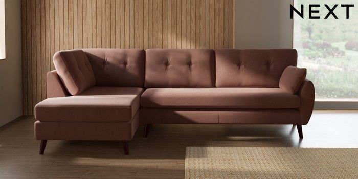 7.3.1 Buy Wilson Buttoned Back Large Corner Chaise - Left Hand Relaxed Linen Look Light Rust Brown Retro Tapered - Dark Brown from the Seasons online shop Click here to use our website with more accessibility support, for example screen readers