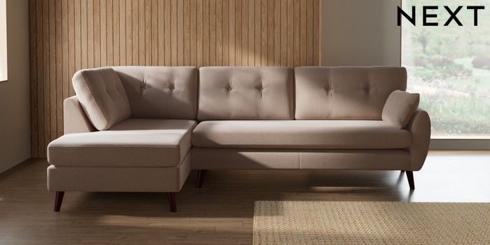 7.3.1 Buy Wilson Buttoned Back Large Corner Chaise - Left Hand Relaxed Linen Look Mid Natural Retro Tapered - Dark Brown from the Seasons online shop Click here to use our website with more accessibility support, for example screen readers