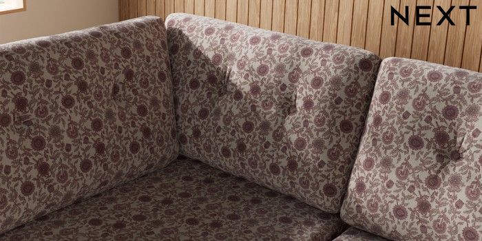 7.3.1 Buy Wilson Buttoned Back Large Corner Chaise - Left Hand Relaxed Linen Look Print Woodblock Floral Print Pink Retro Tapered - Dark Brown from the Seasons online shop