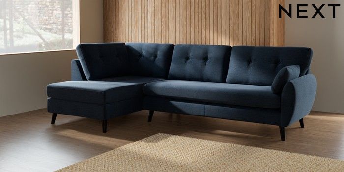 7.3.1 Buy Wilson Buttoned Back Large Corner Chaise - Left Hand Ripple Chenille Dark Blue Retro Tapered - Dark from the Seasons online shop Click here to use our website with more accessibility support, for example screen readers