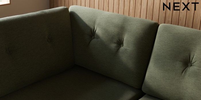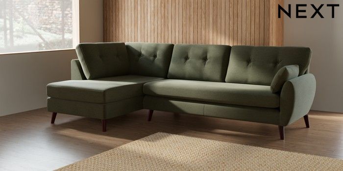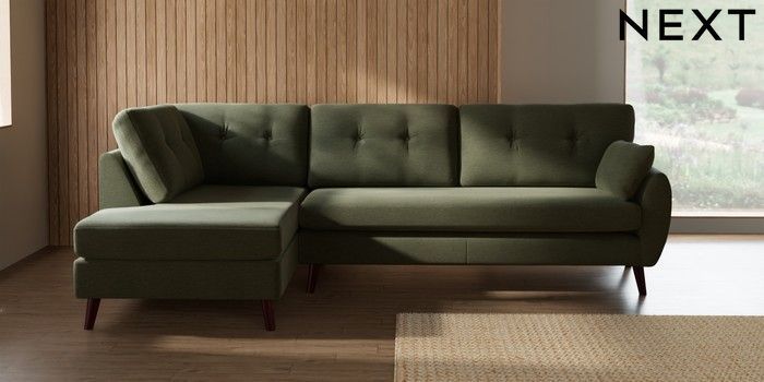 7.3.1 Buy Wilson Buttoned Back Large Corner Chaise - Left Hand Ripple Chenille Mid Moss Green Retro Tapered - Dark Brown from the Seasons online shop Click here to use our website with more accessibility support, for example screen readers
