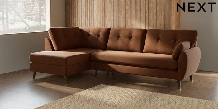 7.3.1 Buy Wilson Buttoned Back Large Corner Chaise - Left Hand Ripple Chenille Mid Rust Brown Low Retro Tapered Metal Cap - Mid from the Seasons online shop Click here to use our website with more accessibility support, for example screen readers