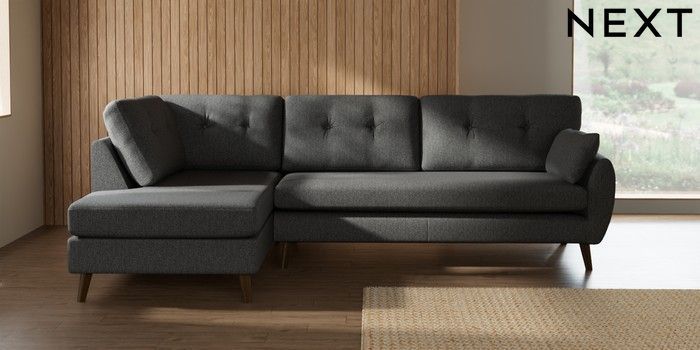 7.3.1 Buy Wilson Buttoned Back Large Corner Chaise - Left Hand Tweedy Chenille Dark Grey Retro Tapered - Mid from the Seasons online shop Click here to use our website with more accessibility support, for example screen readers