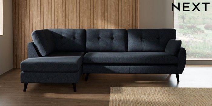 7.3.1 Buy Wilson Buttoned Back Large Corner Chaise - Left Hand Tweedy Chenille Navy Blue Retro Tapered - Dark from the Seasons online shop Click here to use our website with more accessibility support, for example screen readers