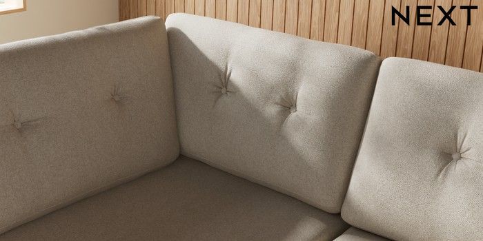 7.3.1 Buy Wilson Buttoned Back Large Corner Chaise - Left Hand Tweedy Chenille Oyster Retro Tapered - Light from the Seasons online shop Click here to use our website with more accessibility support, for example screen readers