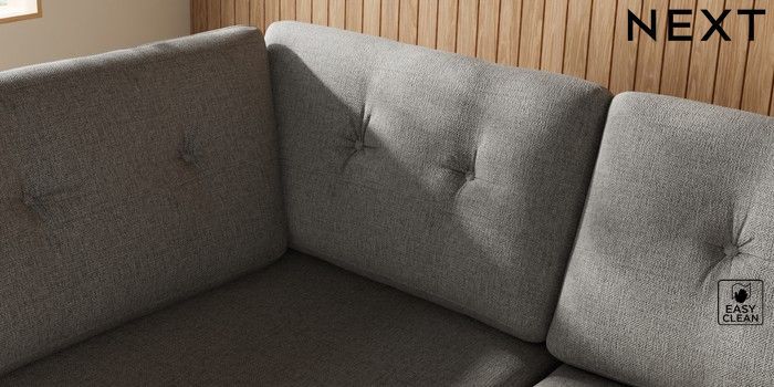 7.3.1 Buy Wilson Buttoned Back Large Corner Chaise - Left Hand Woven Chenille Easy Clean Light Grey Retro Tapered - Dark Brown from the Seasons online shop Click here to use our website with more accessibility support, for example screen readers