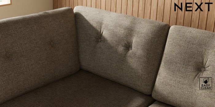 7.3.1 Buy Wilson Buttoned Back Large Corner Chaise - Left Hand Woven Chenille Easy Clean Mid Natural Metal Tapered - Chrome from the Seasons online shop Click here to use our website with more accessibility support, for example screen readers