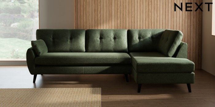 7.3.1 Buy Wilson Buttoned Back Large Corner Chaise - Right Hand Boucle Chenille Dark Moss Green Retro Tapered - Dark from the Seasons online shop Click here to use our website with more accessibility support, for example screen readers