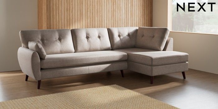 7.3.1 Buy Wilson Buttoned Back Large Corner Chaise - Right Hand Boucle Chenille Light Natural Retro Tapered - Dark Brown from the Seasons online shop Click here to use our website with more accessibility support, for example screen readers
