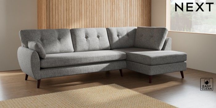 7.3.1 Buy Wilson Buttoned Back Large Corner Chaise - Right Hand Chunky Boucle Easy Clean Light Grey Retro Tapered - Dark Brown from the Seasons online shop Click here to use our website with more accessibility support, for example screen readers
