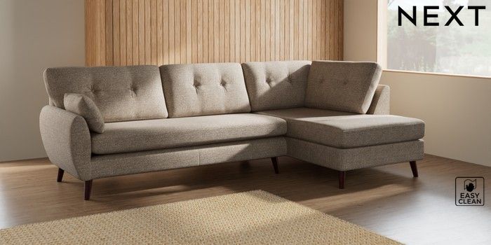 7.3.1 Buy Wilson Buttoned Back Large Corner Chaise - Right Hand Chunky Boucle Easy Clean Mid Natural Retro Tapered - Dark Brown from the Seasons online shop Click here to use our website with more accessibility support, for example screen readers