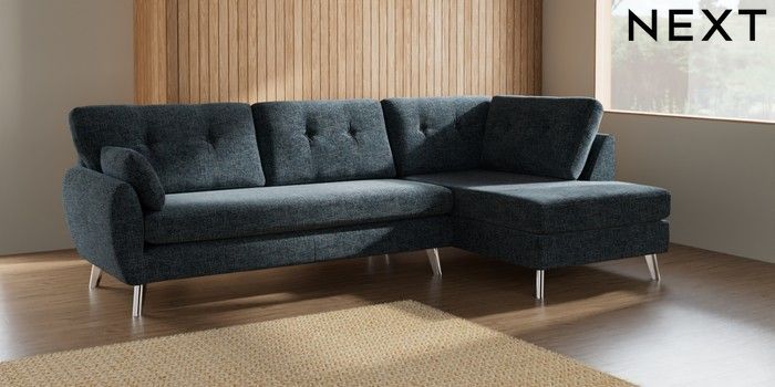 7.3.1 Buy Wilson Buttoned Back Large Corner Chaise - Right Hand Chunky Chenille Dark Navy Blue Metal Tapered - Chrome from the Seasons online shop Click here to use our website with more accessibility support, for example screen readers