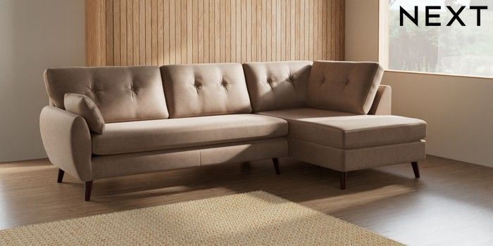 7.3.1 Buy Wilson Buttoned Back Large Corner Chaise - Right Hand Luxe Chenille Mid Natural Retro Tapered - Dark Brown from the Seasons online shop Click here to use our website with more accessibility support, for example screen readers