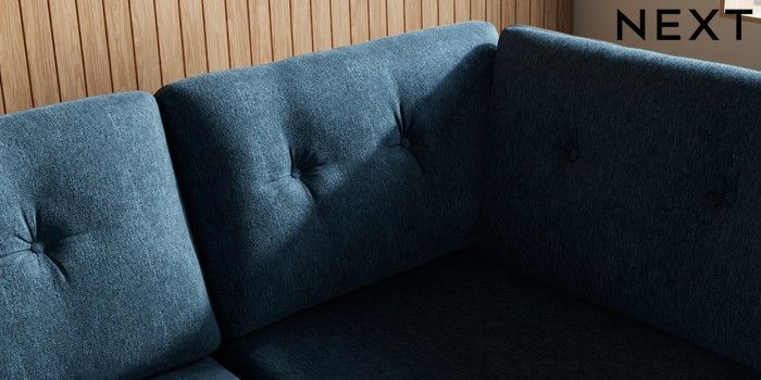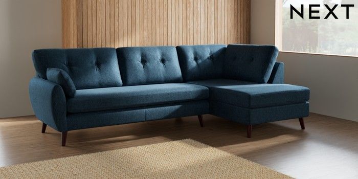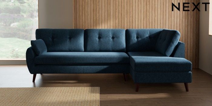 7.3.1 Buy Wilson Buttoned Back Large Corner Chaise - Right Hand Cotswold Chenille Dark Blue Retro Tapered - Dark Brown from the Seasons online shop Click here to use our website with more accessibility support, for example screen readers