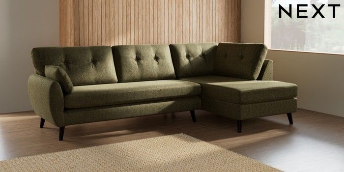 7.3.1 Buy Wilson Buttoned Back Large Corner Chaise - Right Hand Cotswold Chenille Dark Green Retro Tapered - Dark from the Seasons online shop Click here to use our website with more accessibility support, for example screen readers