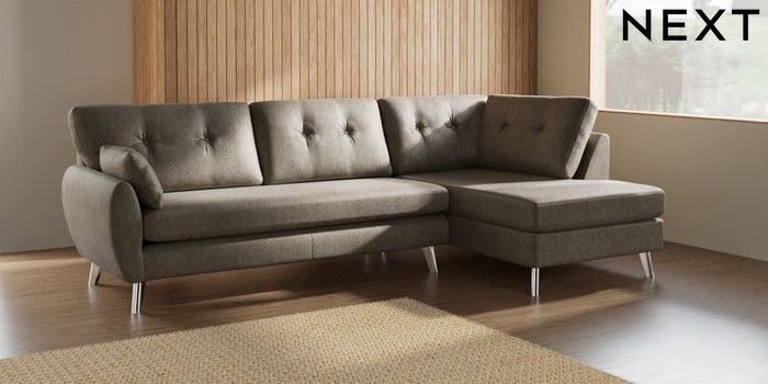 7.3.1 Buy Wilson Buttoned Back Large Corner Chaise - Right Hand Cotswold Chenille Mid Mink Brown Metal Tapered - Chrome from the Seasons online shop Click here to use our website with more accessibility support, for example screen readers