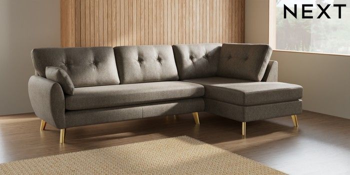 7.3.1 Buy Wilson Buttoned Back Large Corner Chaise - Right Hand Cotswold Chenille Mid Mink Brown Metal Tapered - Gold from the Seasons online shop Click here to use our website with more accessibility support, for example screen readers