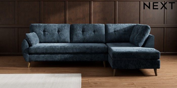 7.3.1 Buy Wilson Buttoned Back Large Corner Chaise - Right Hand Distressed Velour Midnight Blue Retro Tapered - Mid from the Seasons online shop Click here to use our website with more accessibility support, for example screen readers