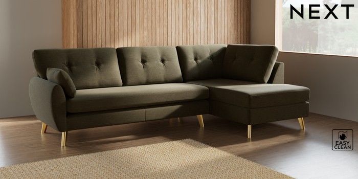 7.3.1 Buy Wilson Buttoned Back Large Corner Chaise - Right Hand Fine Chenille Easy Clean Dark Moss Green Metal Tapered - Gold from the Seasons online shop Click here to use our website with more accessibility support, for example screen readers