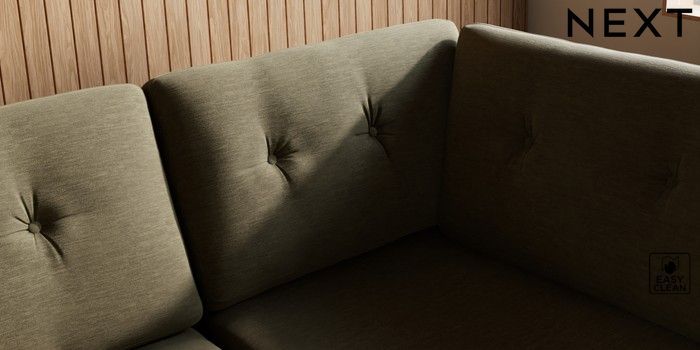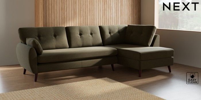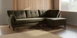 7.3.1 Buy Wilson Buttoned Back Large Corner Chaise - Right Hand Fine Chenille Easy Clean Dark Moss Green Retro Tapered - Dark Brown from the Seasons online shop Click here to use our website with more accessibility support, for example screen readers