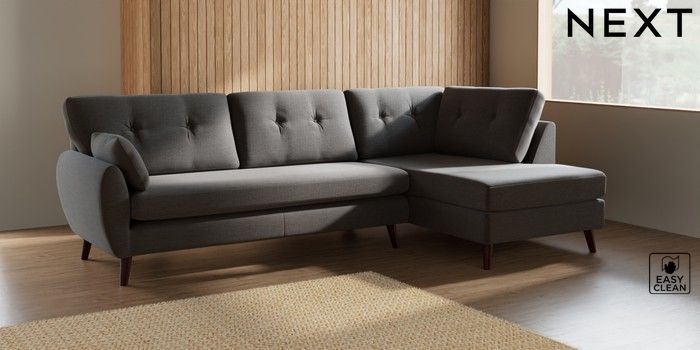 7.3.1 Buy Wilson Buttoned Back Large Corner Chaise - Right Hand Fine Chenille Easy Clean Dark Smoke Grey Retro Tapered - Dark Brown from the Seasons online shop Click here to use our website with more accessibility support, for example screen readers
