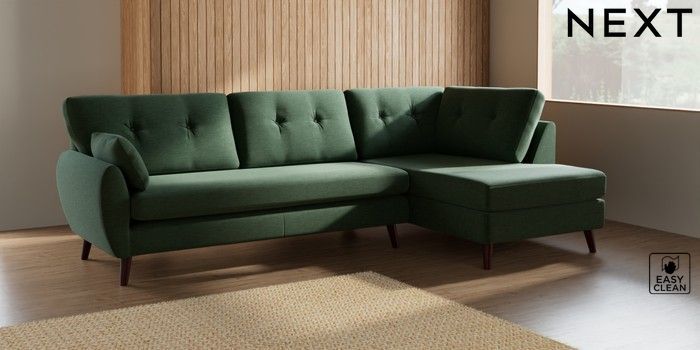 7.3.1 Buy Wilson Buttoned Back Large Corner Chaise - Right Hand Fine Chenille Easy Clean Mid Khaki Green Retro Tapered - Dark Brown from the Seasons online shop Click here to use our website with more accessibility support, for example screen readers