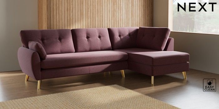 7.3.1 Buy Wilson Buttoned Back Large Corner Chaise - Right Hand Fine Chenille Easy Clean Mid Mulberry Purple Metal Tapered - Gold from the Seasons online shop