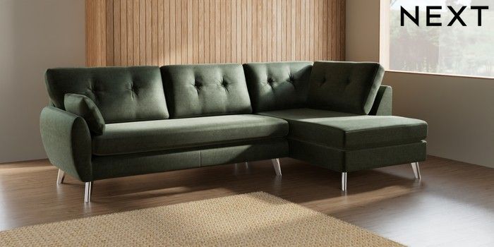 7.3.1 Buy Wilson Buttoned Back Large Corner Chaise - Right Hand Luxe Chenille Mid Green Metal Tapered - Chrome from the Seasons online shop Click here to use our website with more accessibility support, for example screen readers