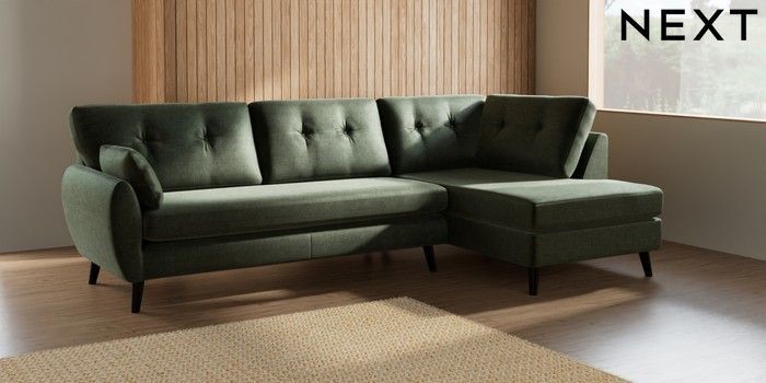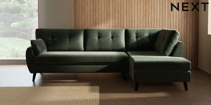 7.3.1 Buy Wilson Buttoned Back Large Corner Chaise - Right Hand Luxe Chenille Mid Green Retro Tapered - Dark from the Seasons online shop Click here to use our website with more accessibility support, for example screen readers