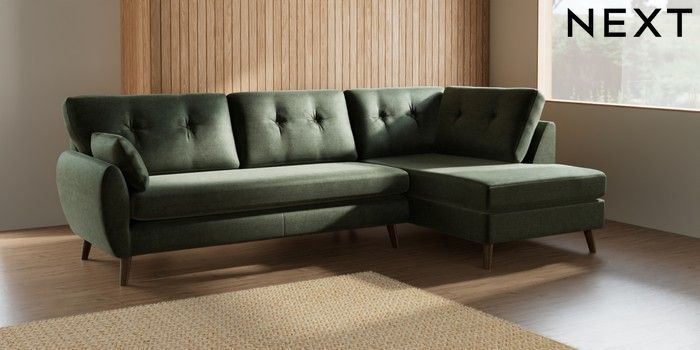 7.3.1 Buy Wilson Buttoned Back Large Corner Chaise - Right Hand Luxe Chenille Mid Green Retro Tapered - Mid from the Seasons online shop Click here to use our website with more accessibility support, for example screen readers