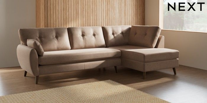 7.3.1 Buy Wilson Buttoned Back Large Corner Chaise - Right Hand Luxe Chenille Mid Natural Retro Tapered - Mid from the Seasons online shop Click here to use our website with more accessibility support, for example screen readers