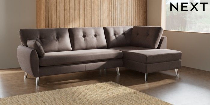 7.3.1 Buy Wilson Buttoned Back Large Corner Chaise - Right Hand Luxe Chenille Mink Brown Metal Tapered - Chrome from the Seasons online shop Click here to use our website with more accessibility support, for example screen readers