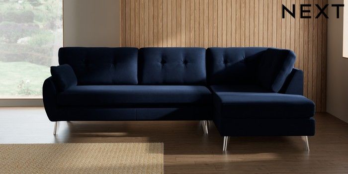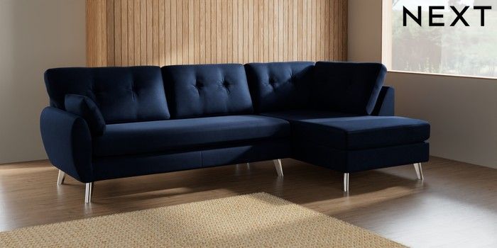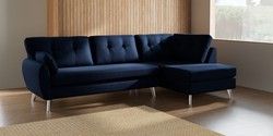 7.3.1 Buy Wilson Buttoned Back Large Corner Chaise - Right Hand Luxe Chenille Navy Blue Metal Tapered - Chrome from the Seasons online shop Click here to use our website with more accessibility support, for example screen readers
