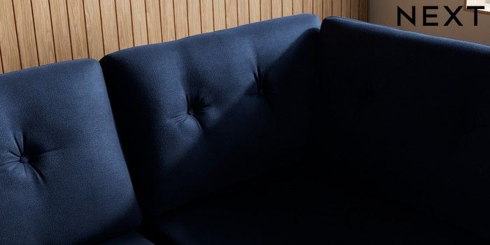7.3.1 Buy Wilson Buttoned Back Large Corner Chaise - Right Hand Luxe Chenille Navy Blue Metal Tapered - Gold from the Seasons online shop Click here to use our website with more accessibility support, for example screen readers
