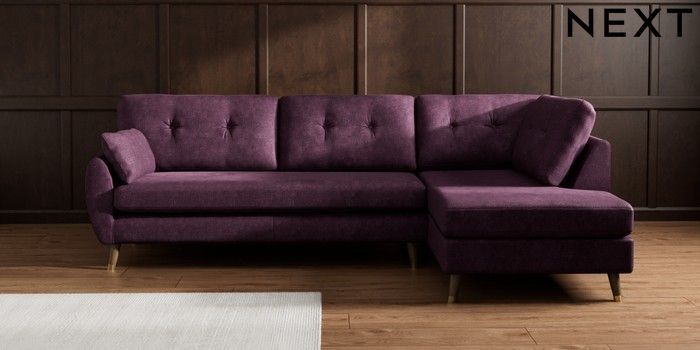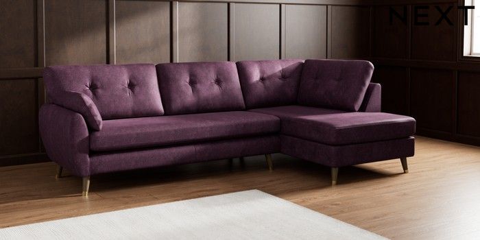7.3.1 Buy Wilson Buttoned Back Large Corner Chaise - Right Hand Plush Chenille Dark Plum Purple Low Retro Tapered Metal Cap - Mid from the Seasons online shop Click here to use our website with more accessibility support, for example screen readers